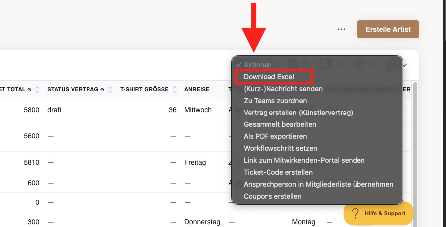Im zweiten Schritt wähle bitte 'Download Excel' aus: