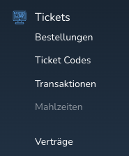 Wenn Du den Menüpunkt Mahlzeiten unterhalb der Sektion Tickets nicht findest (siehe Bild), dann kann das zwei Ursachen haben: