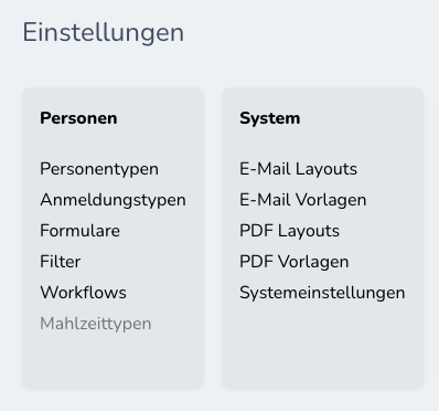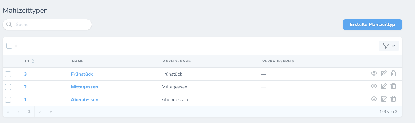 - Um den Menüpunkt anzeigen zu lassen musst Du zunächst einen Mahlzeittypen hinterlegen. Gehe hierfür in die Einstellungen und lege unter Mahlzeittypen einen Neuen an.